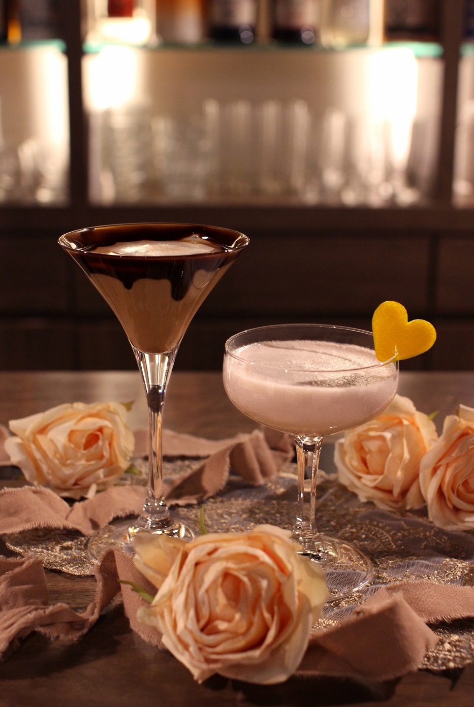 チョコクッキーシロップの甘く香ばしいコクにウイスキーの深みを重ねたショートカクテル「チョコクッキーラテ」、ミルクとホワイトチョコをメインに、ヨーグルトやフランボワーズリキュールの甘酸っぱさがアクセントになった「スイートバレンタイン」の2種類をご用意しました。
